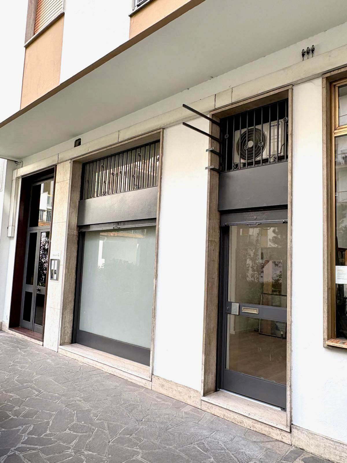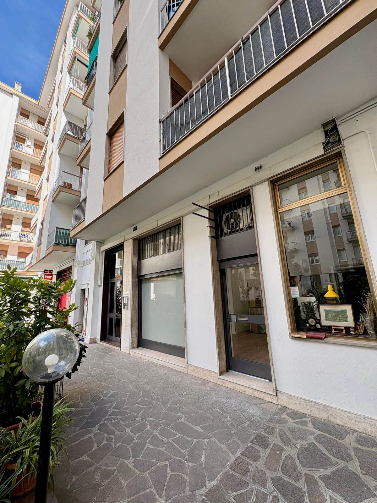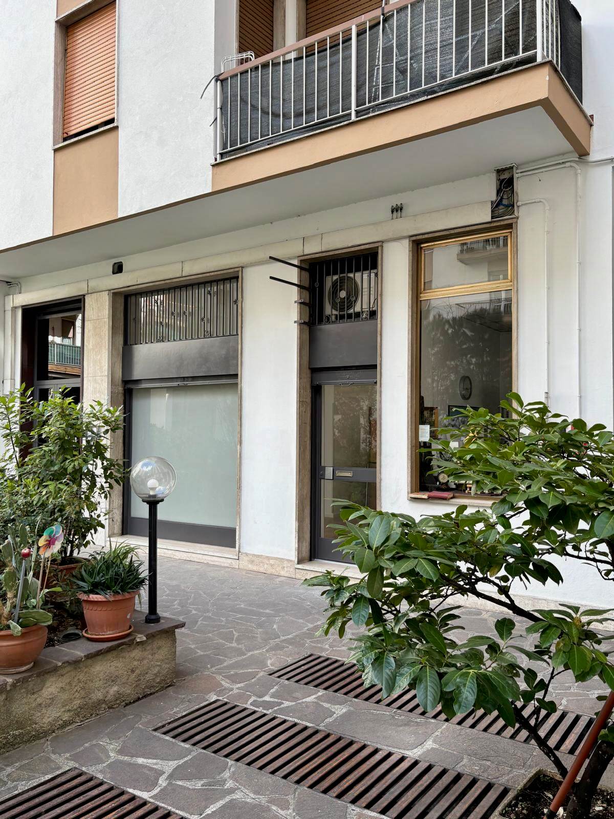Il locale, situato al piano terra, si compone di un luminoso open space con vetrina e servizio igienico, affacciato su una gradevole corte condominiale interna, verde e ben curata.