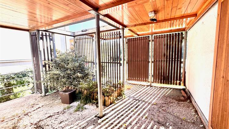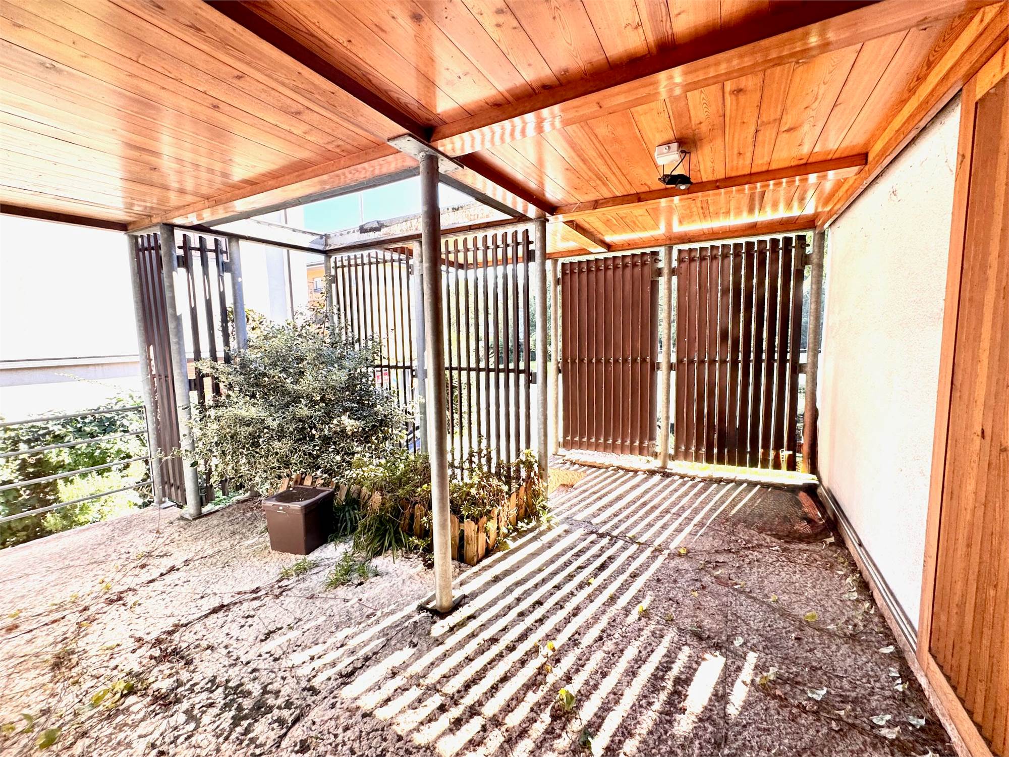 Terrazzo d’ingresso (mq 17), ingresso, soggiorno doppio, cucina abitabile, cinque stanze, ampio disimpegno, due bagni, balcone (mq 9) e giardino di 300 mq circa);