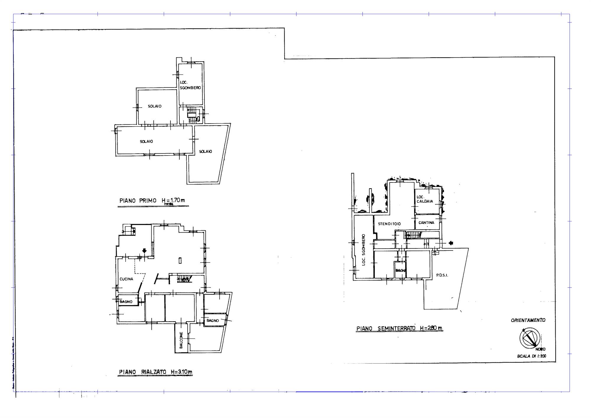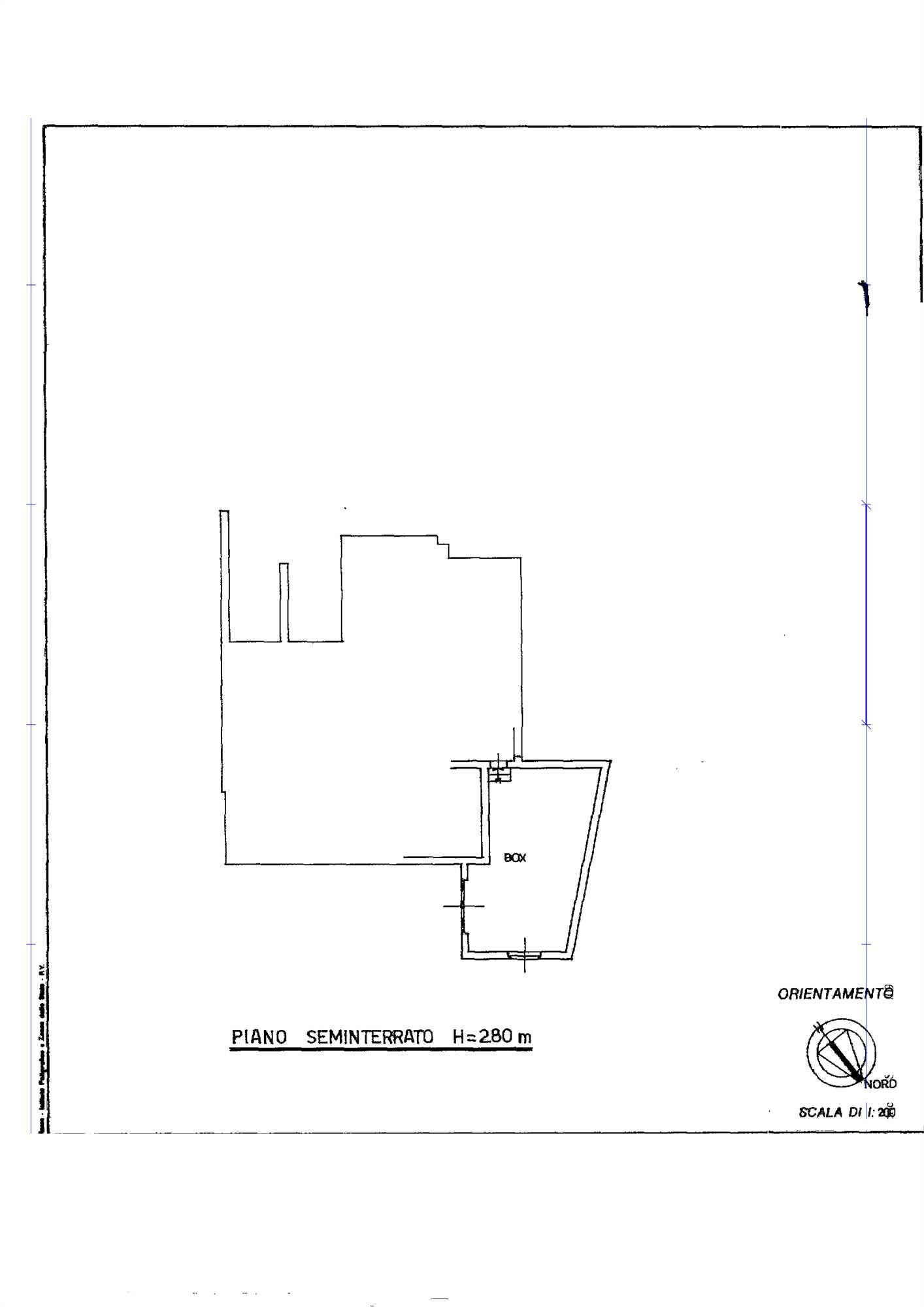 Locale stenditoio, locale sgombero, due stanze, disimpegni, bagno, cantina, locale caldaia e box (mq 45, h 2,80)