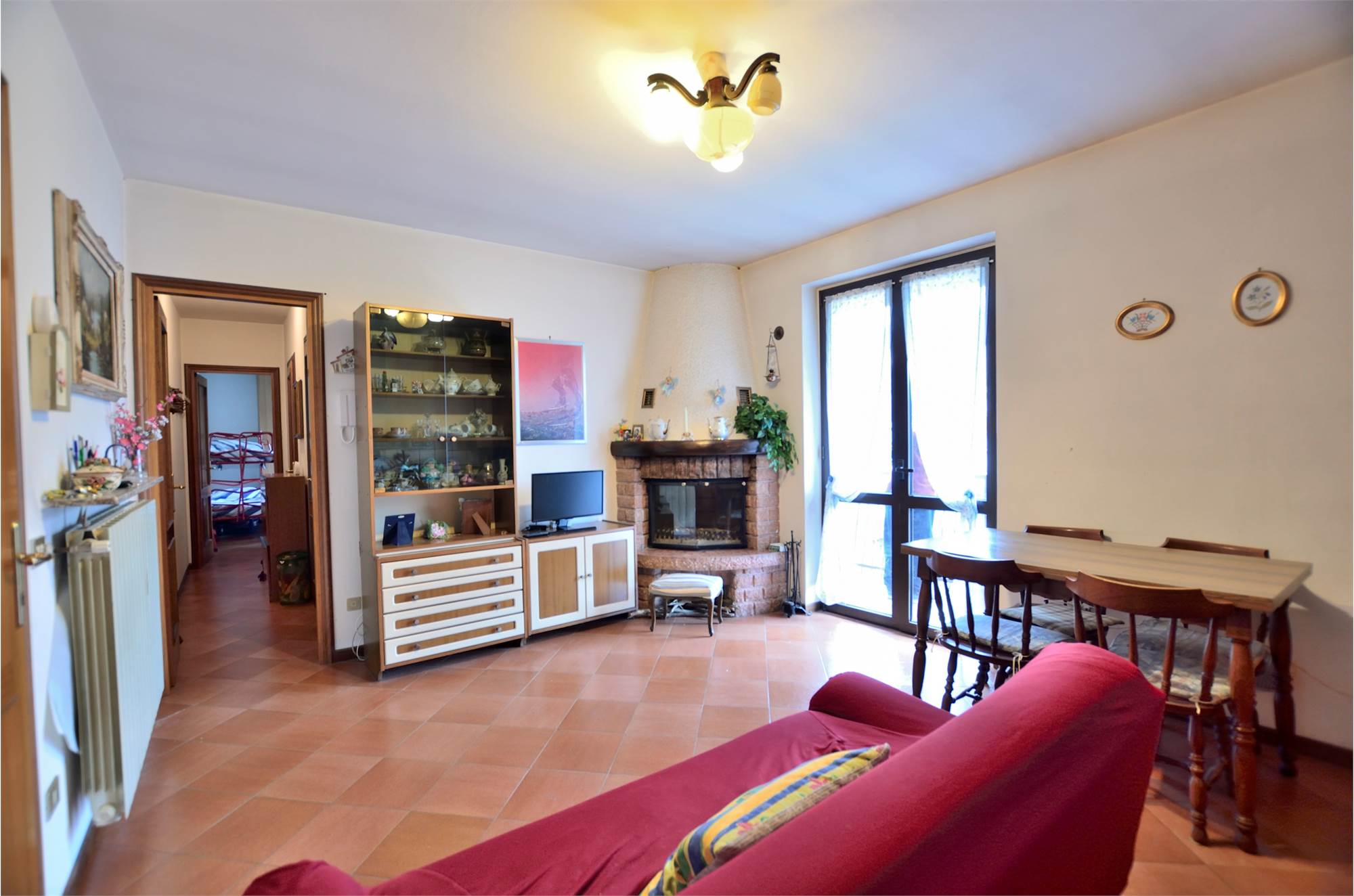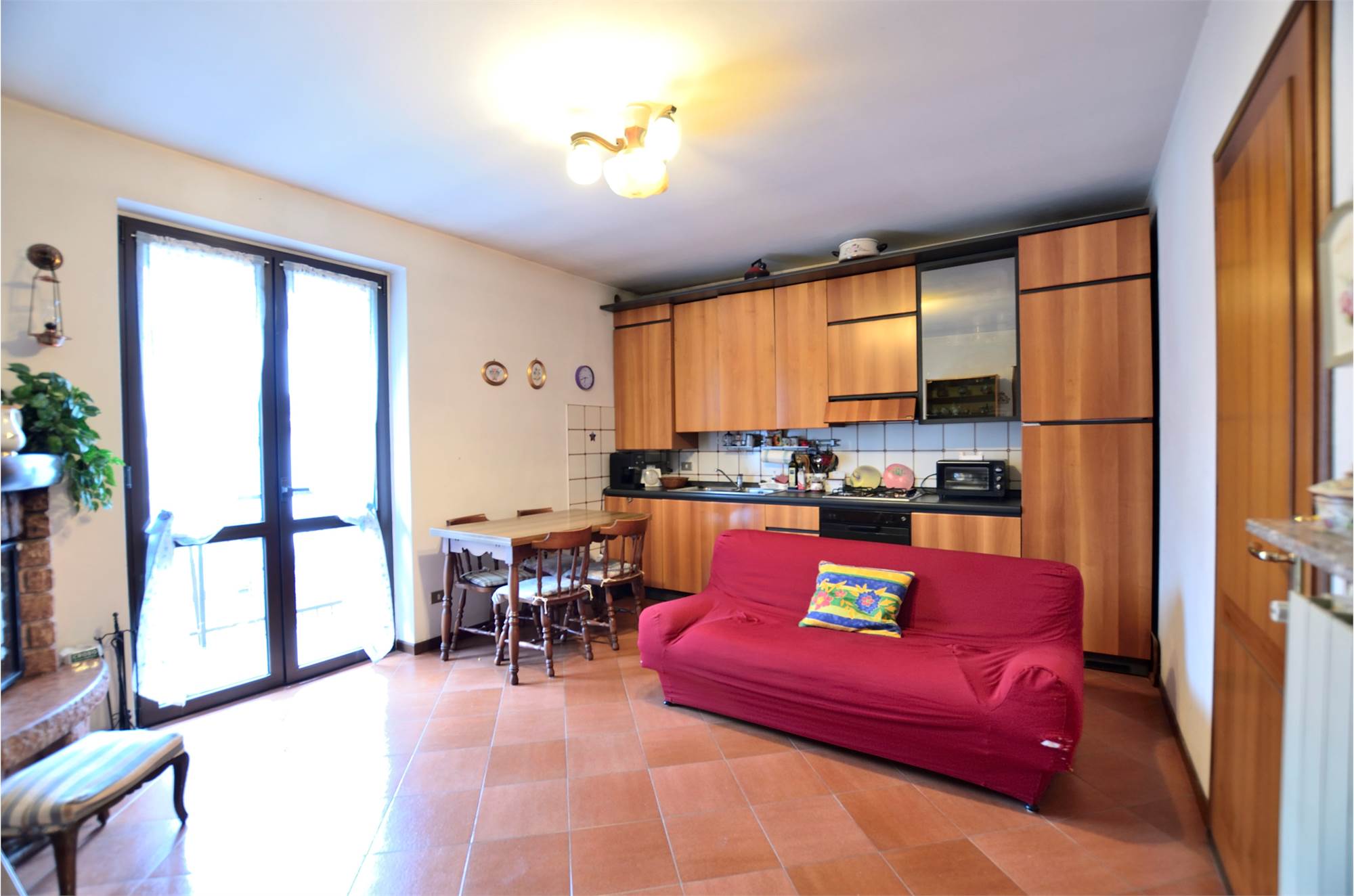 - Soggiorno luminoso con angolo cottura, camino e accesso al balcone