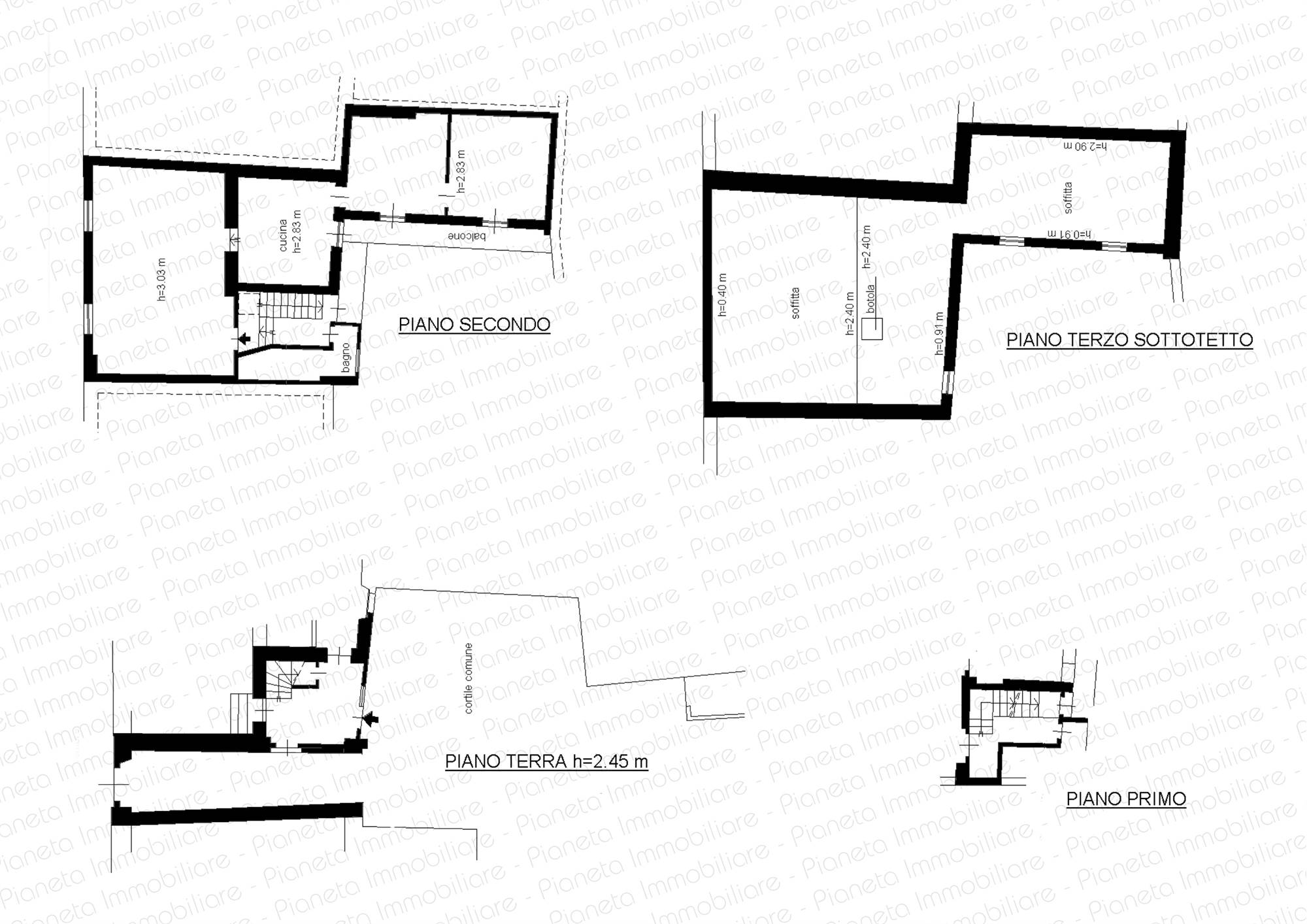 Piano Primo (106 mq): soggiorno, cucina, tre camere, bagno e balcone;