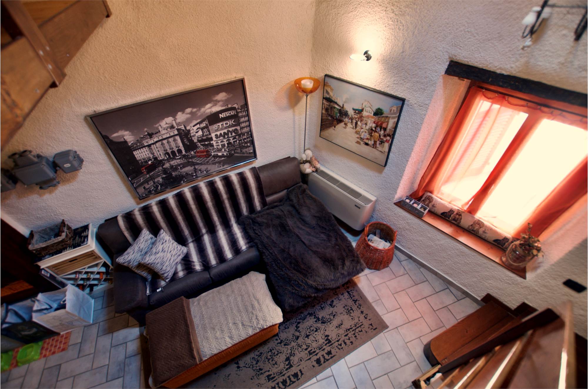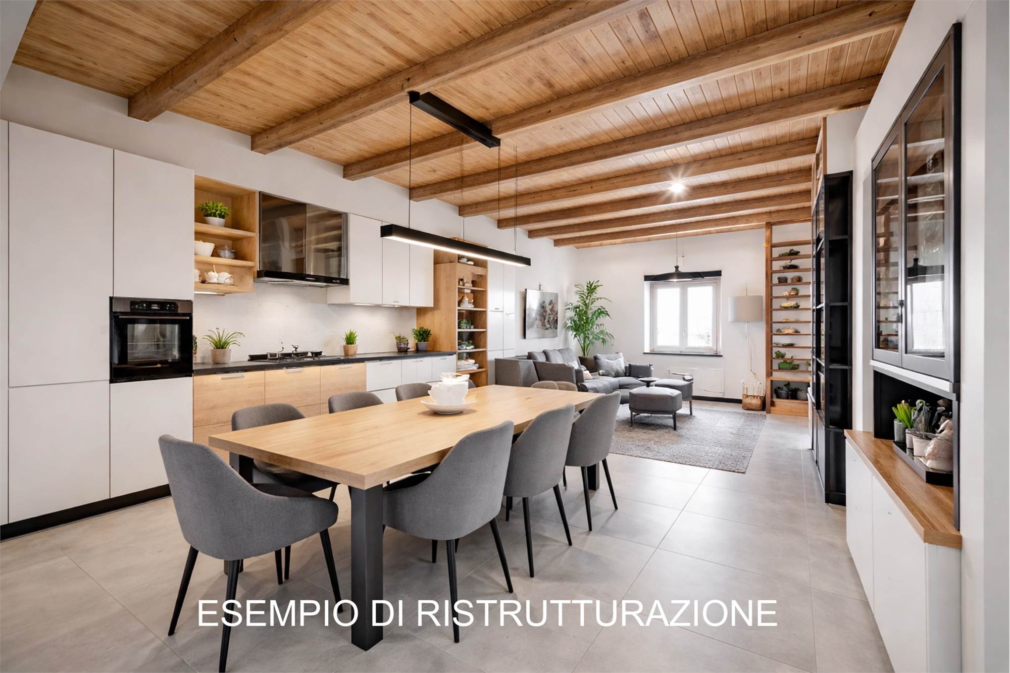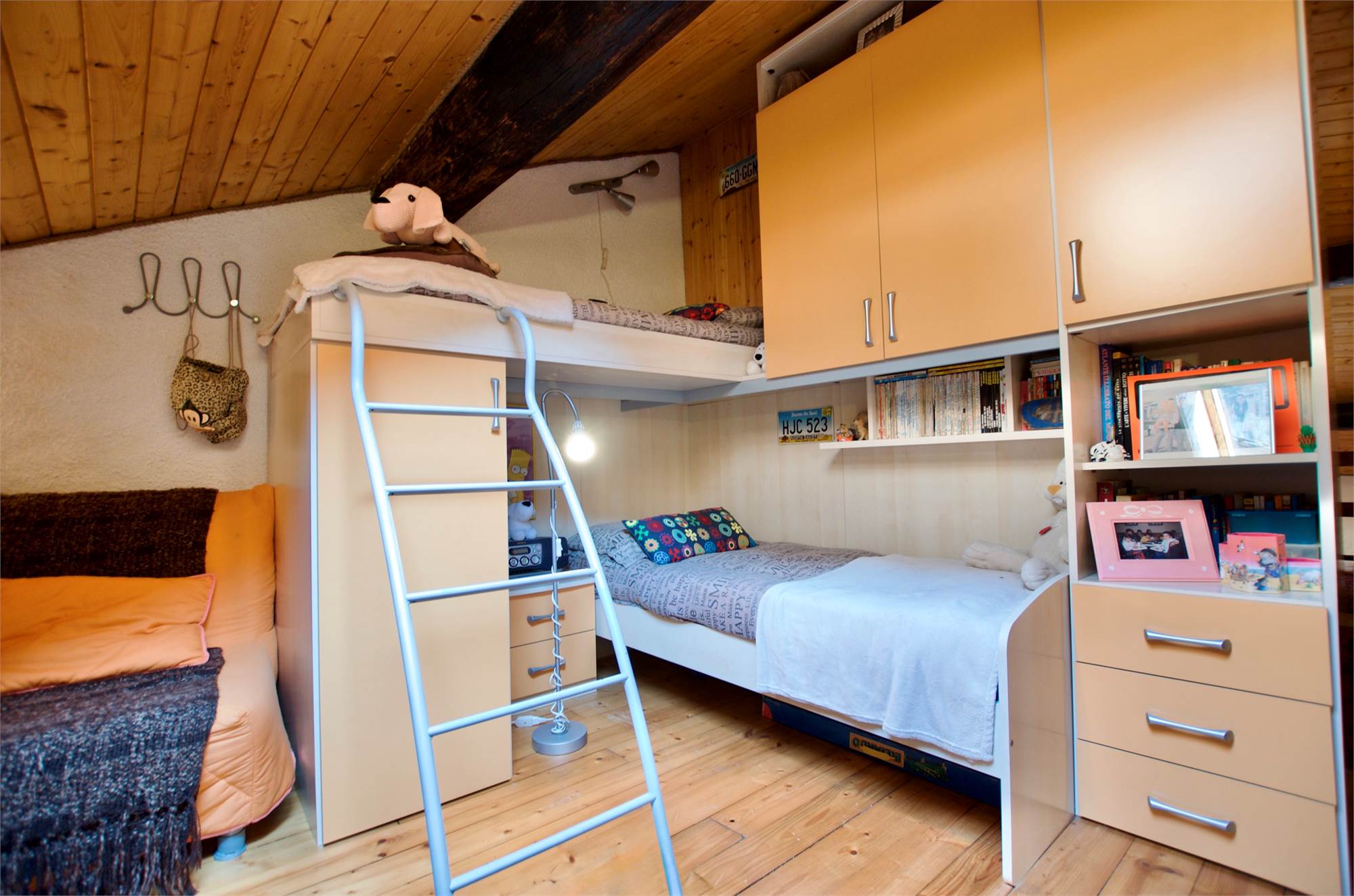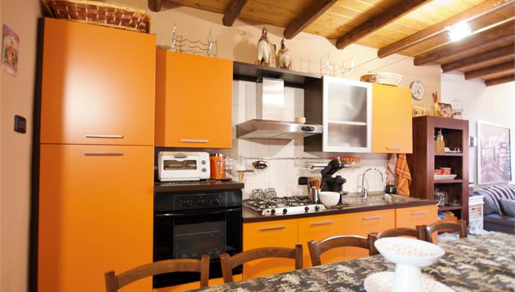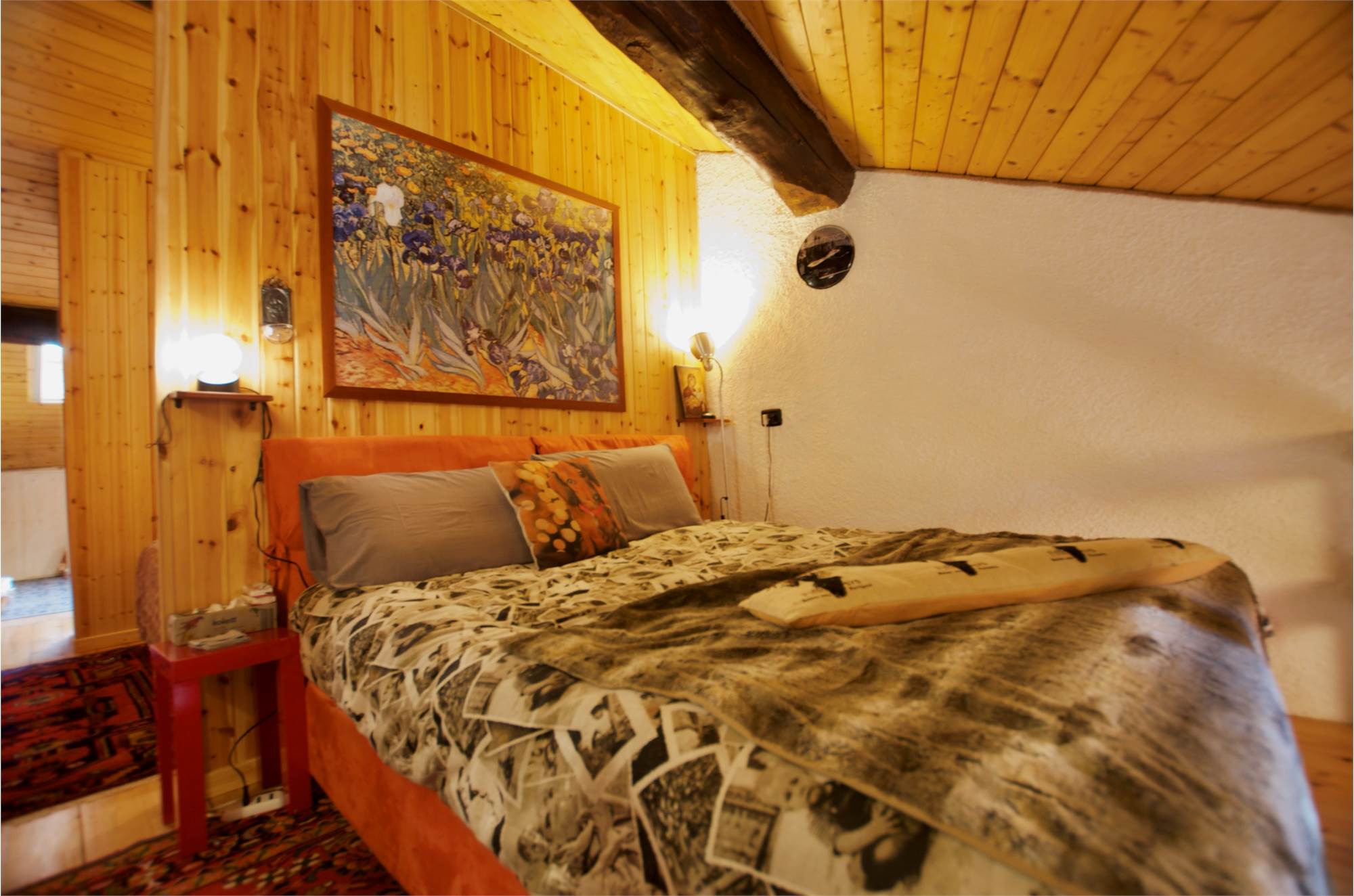 La zona giorno si sviluppa in un ampio e luminoso open space, dove cucina e soggiorno convivono in un’atmosfera accogliente e conviviale, perfetta per momenti di relax o serate in compagnia, servita da un bagno. Una scenografica scala in legno conduce al soppalco, dove si apre una zona notte dal carattere unico: due camere delimitate da eleganti pareti in legno, intime e suggestive, che esaltano l’anima storica dell’edificio.
