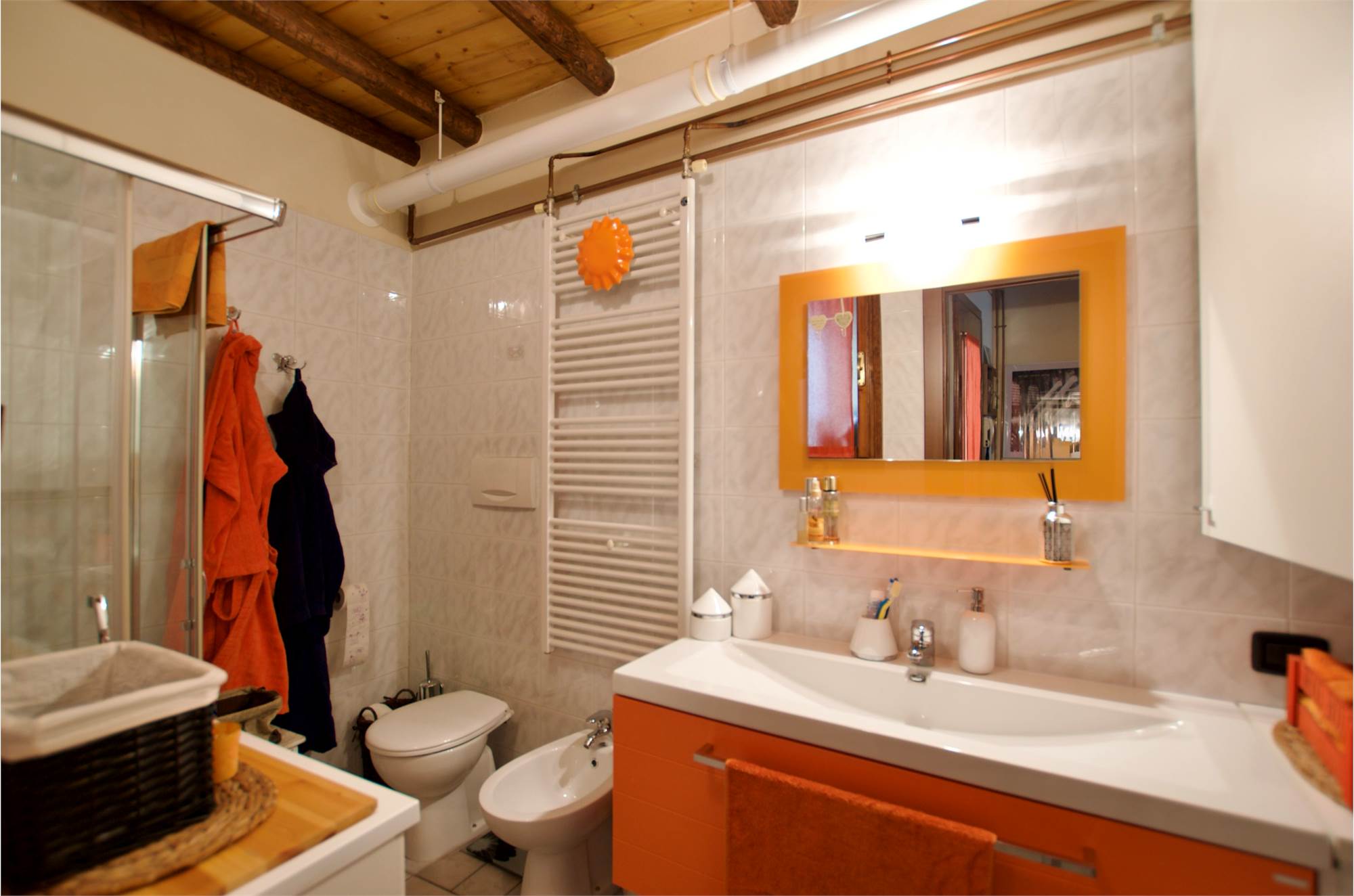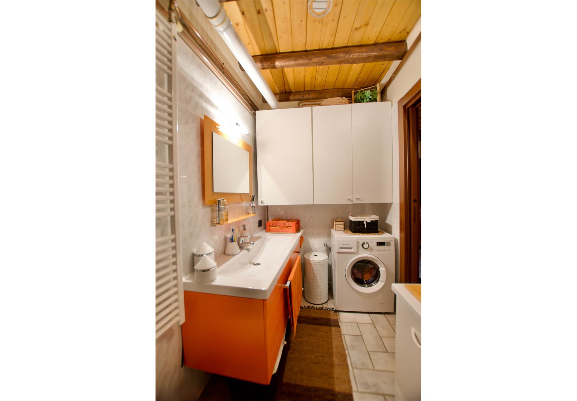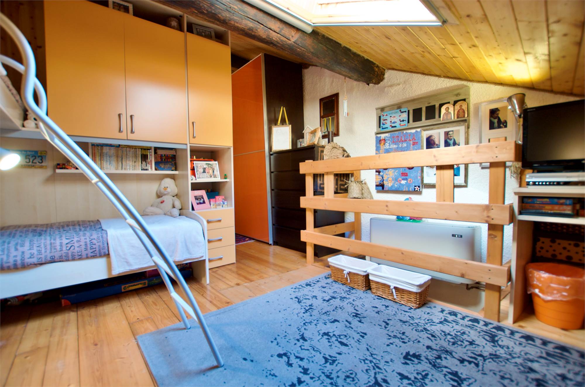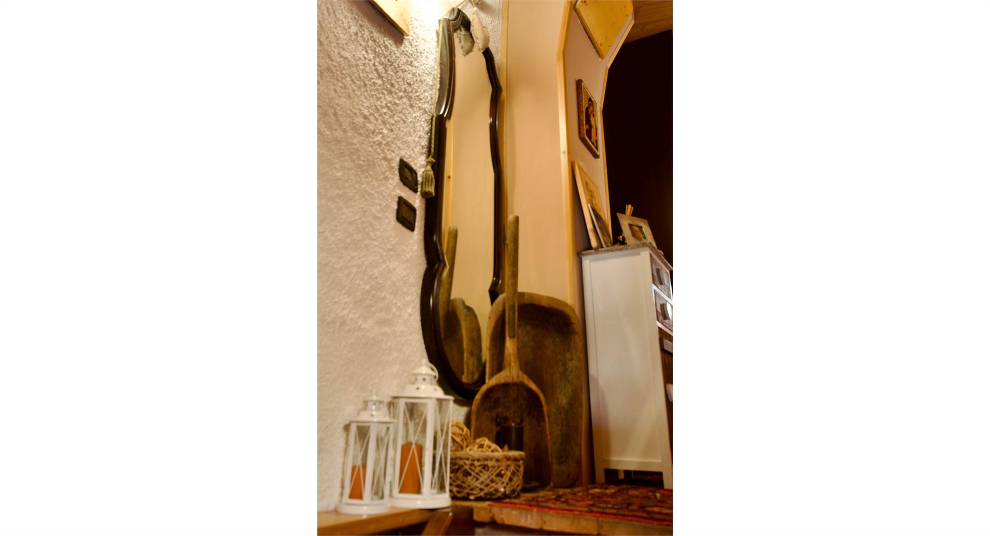 Situata al primo piano con ingresso indipendente, questa proprietà unisce il calore della tradizione montana al comfort contemporaneo.